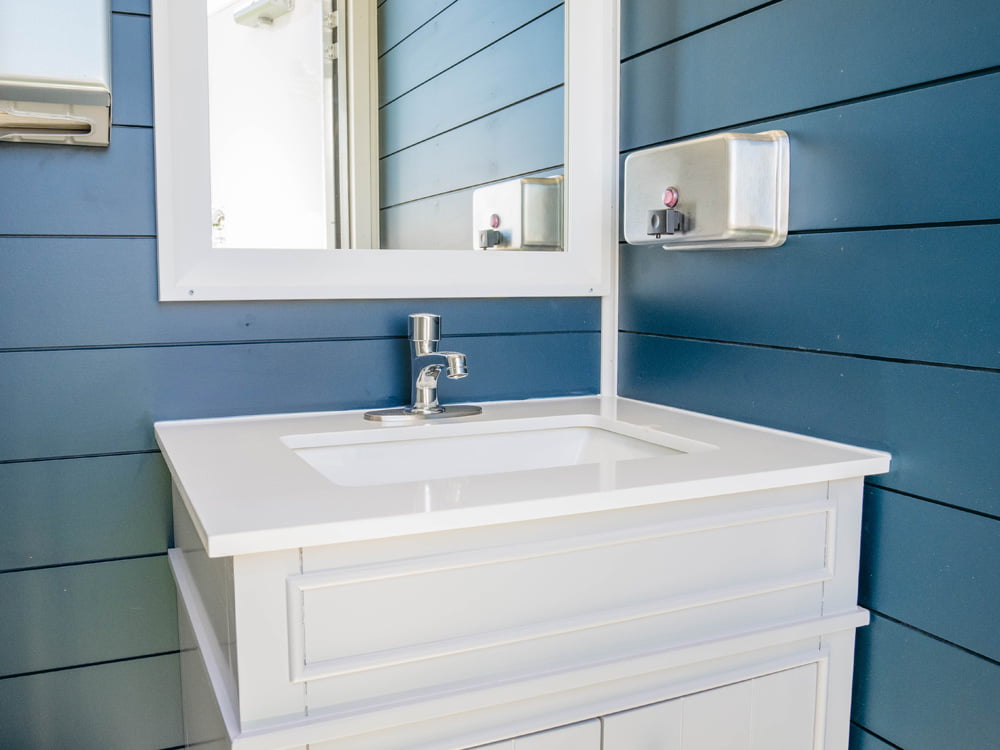 - Female door: 1 private stall, 1 vanity, 1 sink
